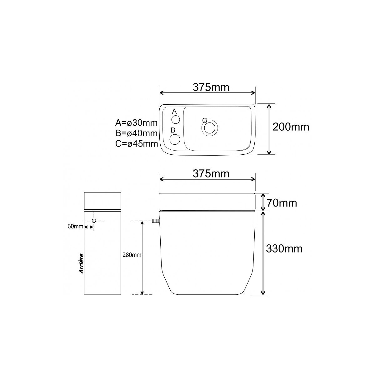 RÉSERVOIR SEUL AVEC LAVE MAINS INTÉGRÉ : - Réservoir universel en céramique - Lave mains intégré en céramique CARACTÉRISTIQUES : - Type d'alimentation du réservoir : Alimentation en eau possible à gauche comme à droite du réservoir. - Volume de chasse : mécanisme 3/6L économique - robinet flotteur silencieux LAVE MAINS : - Bonde de vidage à écoulement libre - Robinetterie chromé eau froide - Lave-mains non réversible INSTALLATION : - Jeu de fixation pour le réservoir (entraxe mini 135mm-maxi 185 mm) - Robinet d 'arrêt non fourni. Céramique Garantie 10 ans Mécanismes garantis 2 ans Ce réservoir s'adapte sur toutes les cuvettes standards, si vous êtes équipés d'un ancien WC ou avec une conception de céramique spécifique des difficultés de compatibilité peuvent apparaître. En cas de doute, n'hésitez pas nous contacter pour obtenir de l'aide. Préconisation : Il est important de comparer la profondeur et l'entraxe de fixation de votre réservoir de WC actuel pour permettre l'installation sans difficulté de notre produit. https://www.youtube.com/embed/7kVId-JrcgM