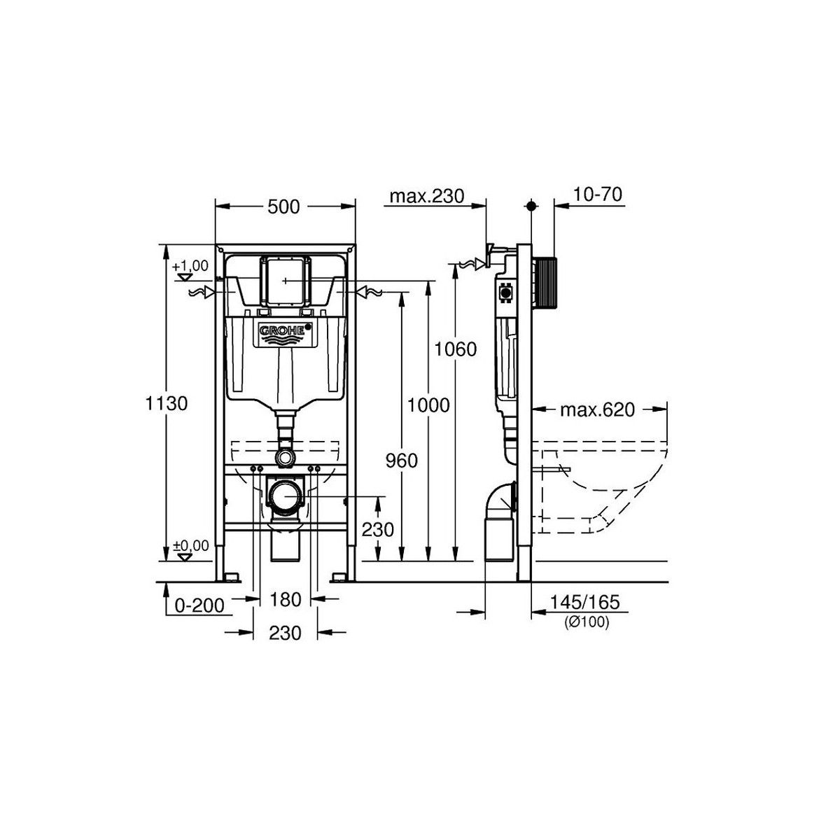 Ce lot est composé de Bâti support mur porteur Grohe Rapid SL - Ref : 39144000 Plaque de déclenchement Grohe Skate Air blanche (38505SH0) ou chromée (38505000) Points forts Matériaux de qualité Fonctionnel et pratique Fiable et durable Caractéristiques du bâti support Grohe Bâti support pour WC, 1.13 m Réservoir GD 2 Pour mur porteur Châssis en acier finition époxy Pour cloison sèche, complètement pré-monté Avec raccords fixés Avec réglage rapide et verrouillage de la hauteur Livré avec matériel de fixation Réservoir et mécanisme pneumatique Certifié NF Livré avec tiges et écrous pour fixation de la cuvette wc Fixation céramique Ecartement des fixations 180/230 mm Pipe coudée PVC 100 mm Pièce de raccordement ∅ 80 Garniture d évacuation et d alimentation Réservoir GD 2 contenant les caractéristiques suivantes Réglage d usine 3 et 6 L Mécanisme à déclenchement pneumatique compatible avec plaque de commande simple touche (interrompable) et double touche(interrompable) Alimentation latérale par le dessus ou par l arrière Groupe de robinetterie I Réservoir isolé contre la condensation Alimentation d eau avec robinet d équerre et raccordement flexible, connection rapide sans outil Aucun outil n est nécessaire pour l installation y compris la protection pendant la phase de construction Y compris les supports muraux 3855800M pour installation murale Référence produit : 39144000 Plaque de commande Skate Air Grohe Double touche interrompable Pour mécanisme pneumatique AV1 Montage vertical 156 x 197 mm En ABS GROHE StarLight Chrome éclatant et durable GROHE EcoJoy économie d’eau Référence plaque blanche : 38505SH0 Référence plaque chromée : 38505000