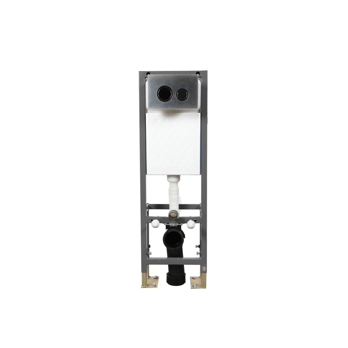 Bâti support en acier : -Dimensions : Longueur : 352 x Profondeur : 220 x H.mini 1100 mm. -Fixation au sol 6 points. -Hauteur de la cuvette réglable -Plaque de commande à bouton poussoir finition chrome satiné -Trappe de commande en ABS pour accéder au mécanisme -Réservoir pré-réglé d'usine 3/6L -Montage en sortie verticale et horizontale pipe -Robinet flotteur silencieux -Vanne d'arrêt 1/2 tour intégrée
