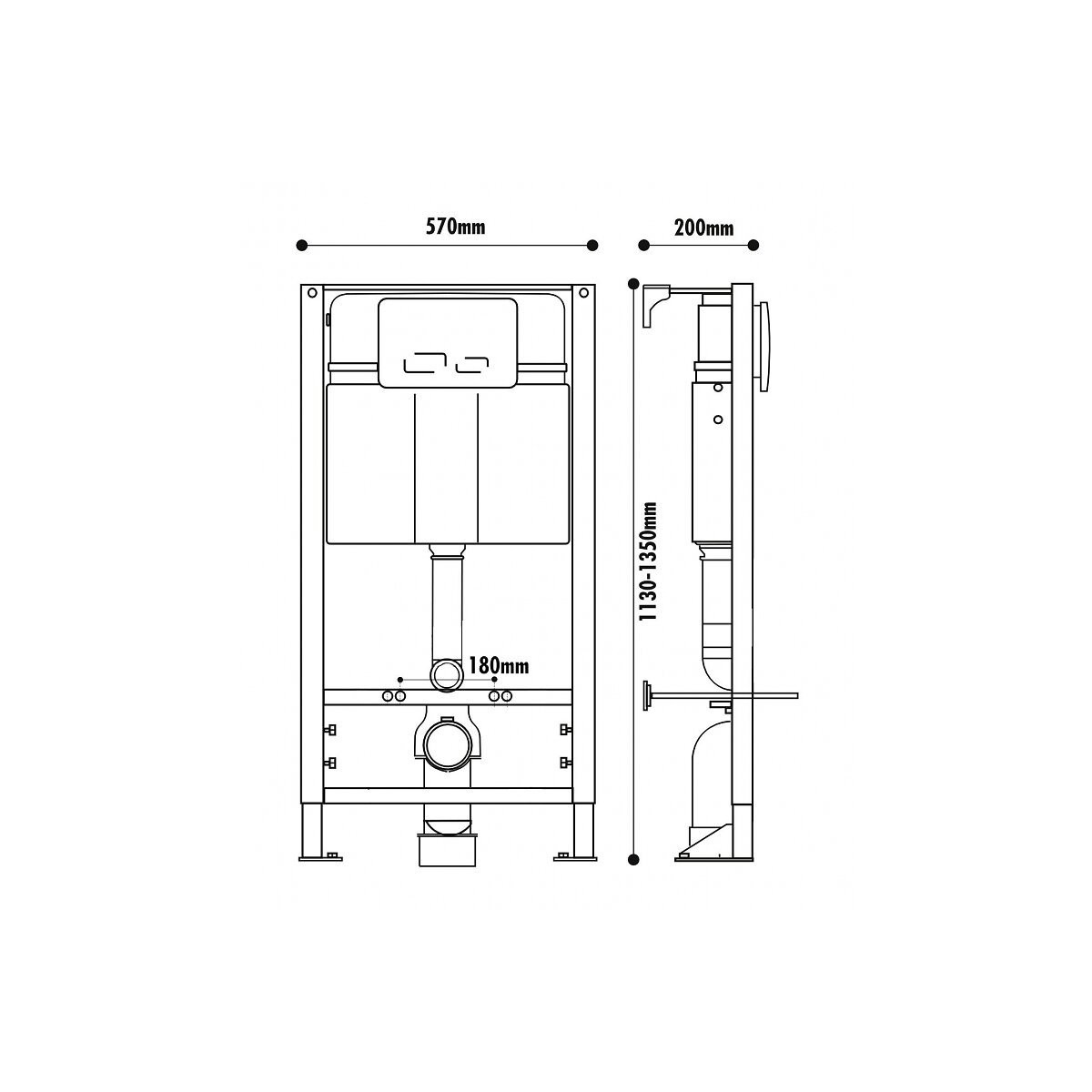 CARACTÉRISTIQUES DU BÂTI WC SUSPENDU : - Bâti autoportant traité anti corrosion - Structure en acier galvanisé - Mécanisme 3l/6l économiseur d'eau - Robinet flotteur silencieux - Kit de raccordement plaque de déclenchement - Plaque de déclenchement éléctronique Sense blanche 3L/6L - Kit de fixation sol et mur - Support de charge : 400 kg - Poids : 23Kg INSTALLATION : - Évacuation coudée verticale; Diamètre 100mm DIMENSIONS : - Hauteur :1005mm - Largeur : 570mm - Profondeur : 145mm - Entraxe de fixation de la cuvette : 180mm (ou 230mm)